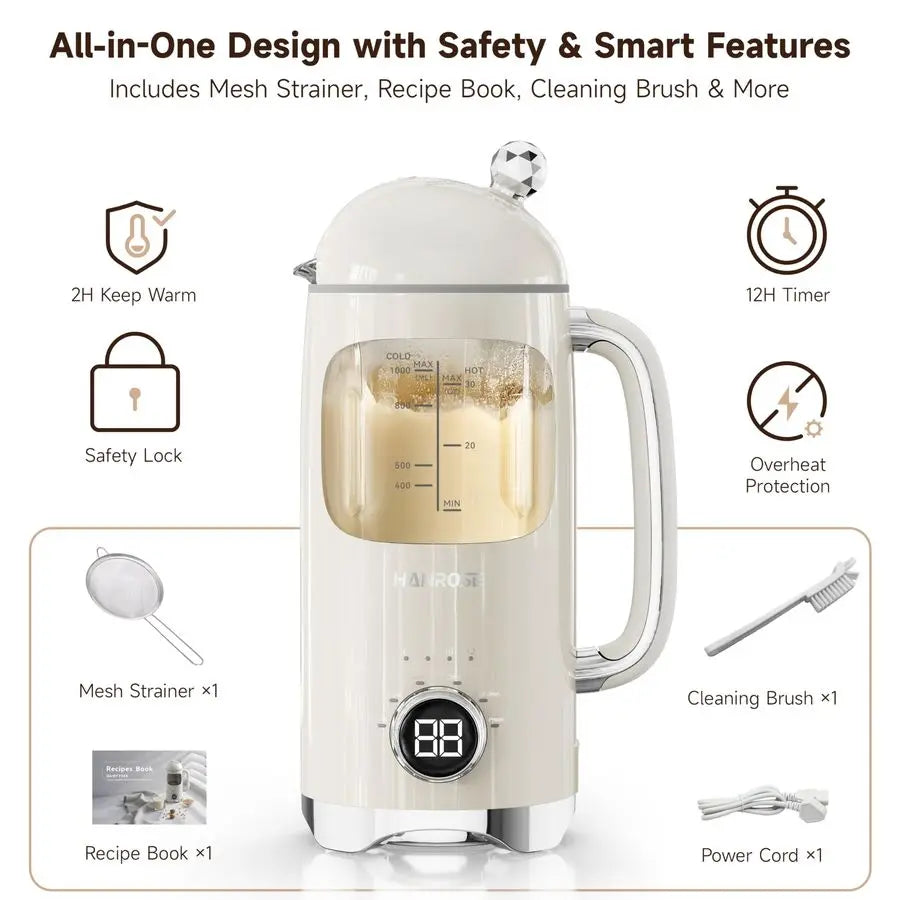 Versatile 6in1 Multifunction This upgraded nut milk maker combines 6 functionssoy milk, almond milk, oat...
