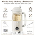 Versatile 6in1 Multifunction This upgraded nut milk maker combines 6 functionssoy milk, almond milk, oat milk, cashew milk, smoothies, fruit juice, rice paste and morein one compact machine. It features a 2hour keepwarm mode to enjoy drinks at the perfect temperature anytime, plus a 12hour delay start for flexible scheduling. With its hightemperature selfcleaning that completes in just 5 minutes, its your allinone solution for healthy hot and cold drinks at home.